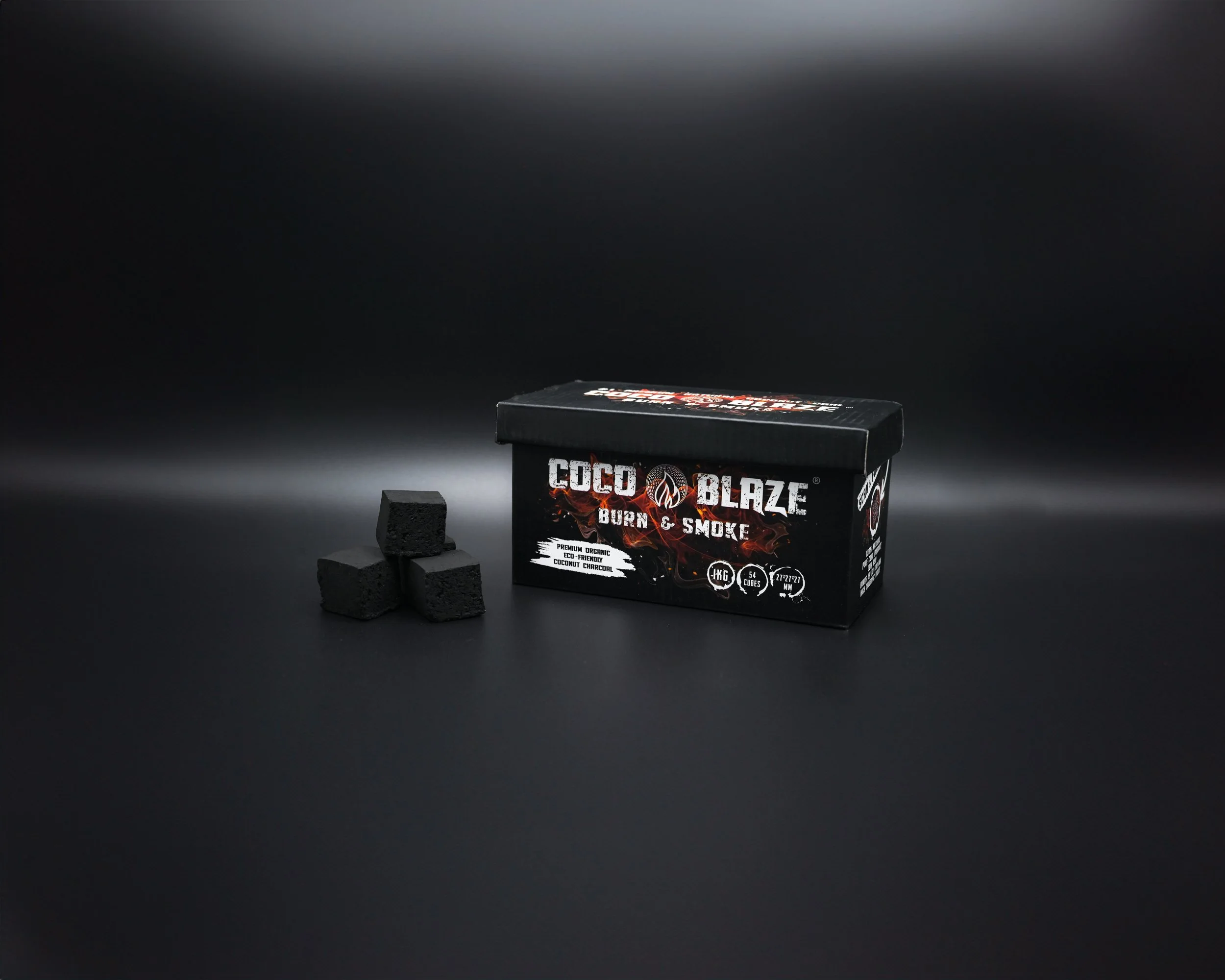 Each Coco Blaze box contains 1 kg and 54 cubes of high-quality organic charcoal for long lasting smoking pleasure.